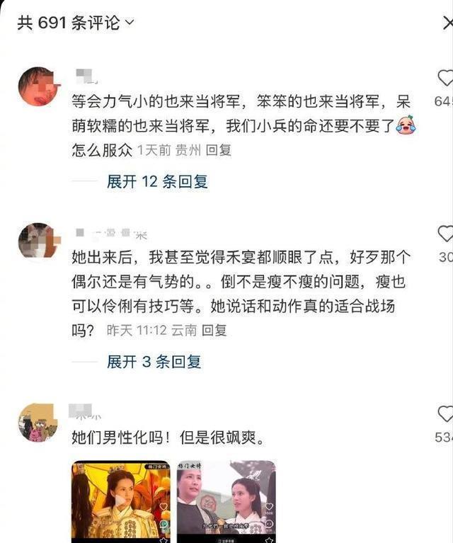 动作戏也拉垮,黎霜近身拉箭,拉箭时也是软绵绵的,三根手指拉弓被群嘲,看她拉弓总觉得很费力。还有被大家群嘲的在战场“提甲迈小碎步”遭群嘲,救命啊!她是大将军,不是闺阁小女娘!